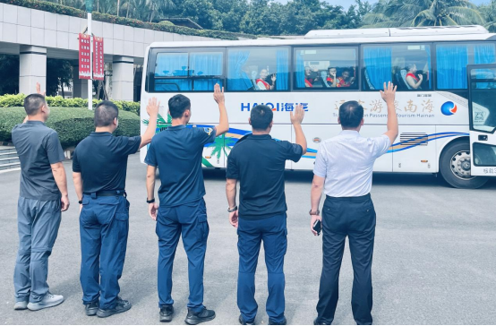 (傅清学与各系教官挥手送别学生 刘琳 摄)